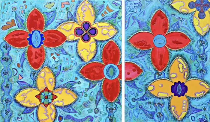 Uslada.art, Flower Moon (diptych), 2020. Acrylic on canvas, 170 × 100 cm.