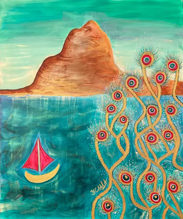 From the very first painting I created in 2011, I felt transported into a realm of infinite possibilities: joy, reflection, ecstasy. Archetypal images seemed to appear from invisible realms, and I rendered them visible as vivid symbolic messages for myself and the viewer. This process became a virtuous circle of transformation and enchantment, what I now call pure magic. The mystical space I enter while painting feels like a higher octave of healing. I’m not a passive observer but an active participant – a spiritual alchemist. Corbin’s concept of the imaginal realm perfectly captures this: a reality between the physical and spiritual worlds. When I paint, I co-create with the archetypal forces of that realm. Viewers often describe feeling a palpable energy from my works, as if they emit medicine for the soul.